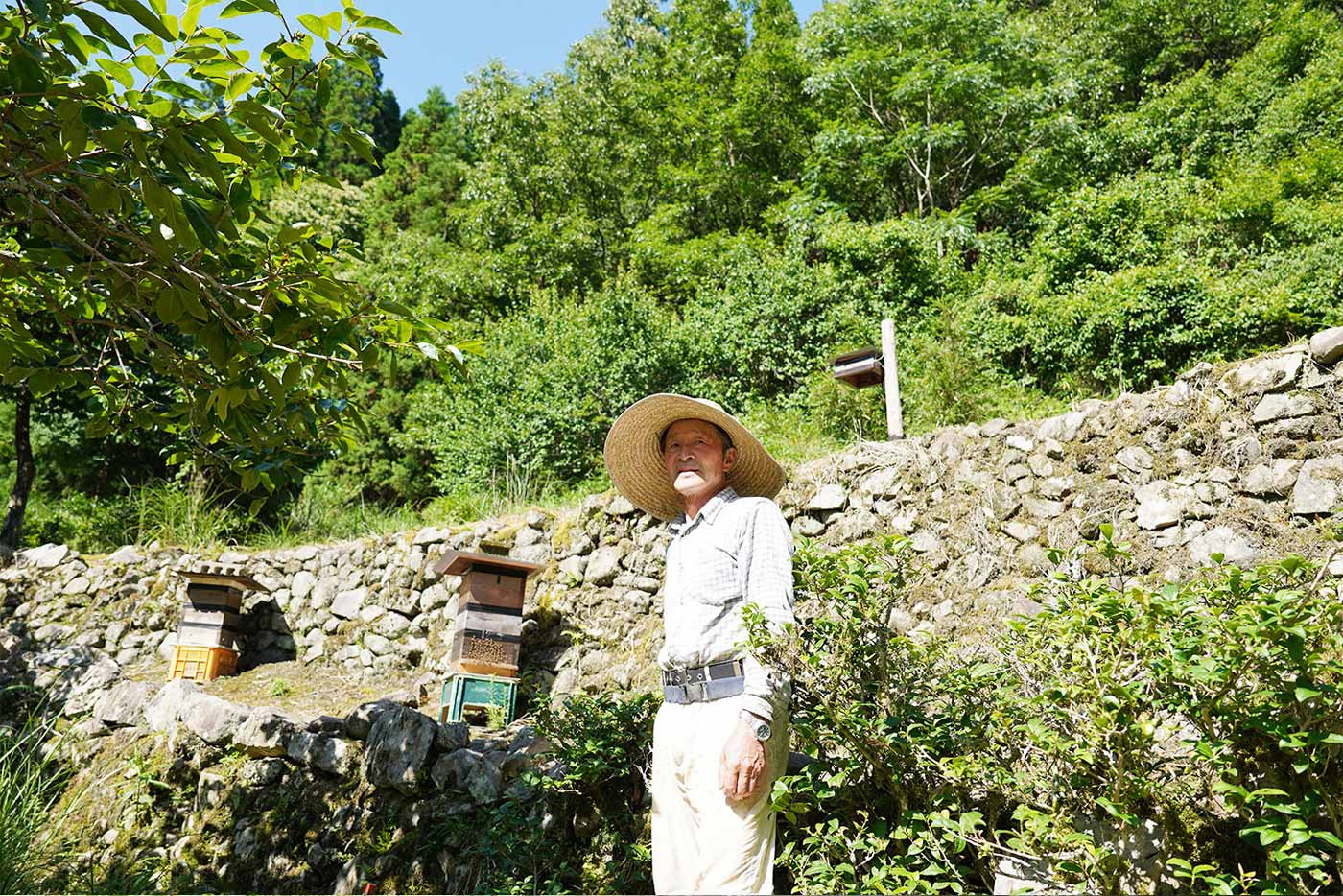 本誠一さんは日本ミツバチの養蜂を始めて10年。生姜農家をしながら、