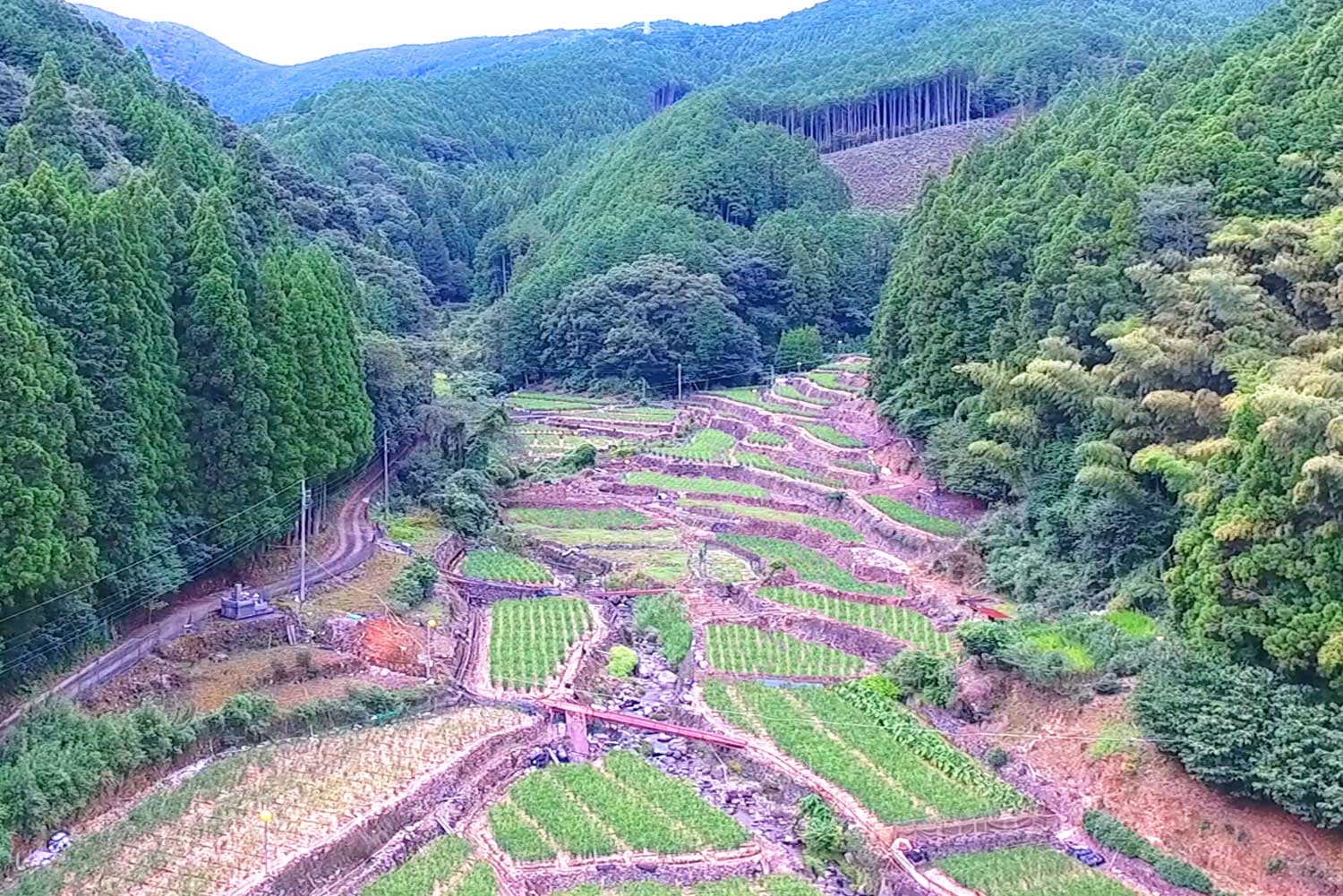 山の斜面を利用した段々畑、山あいの郷ならではの自然の恵みで育まれた